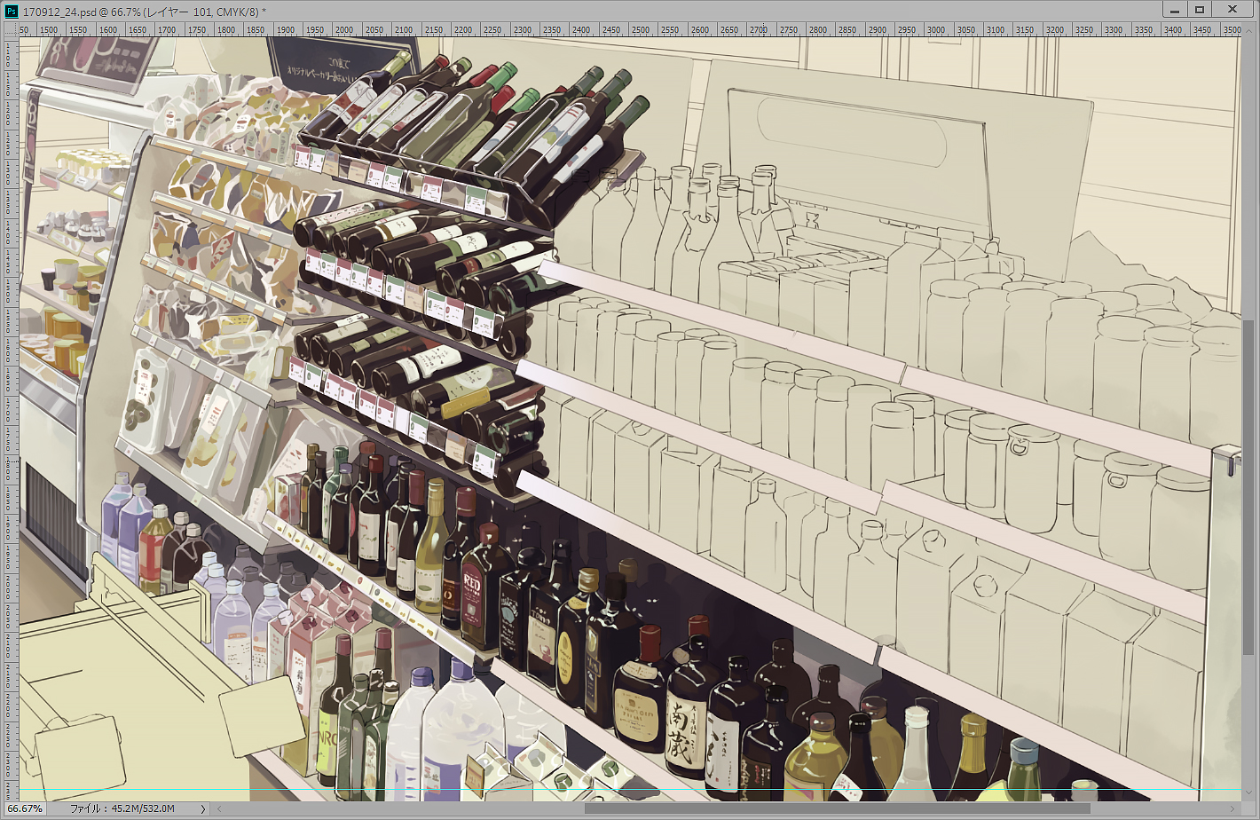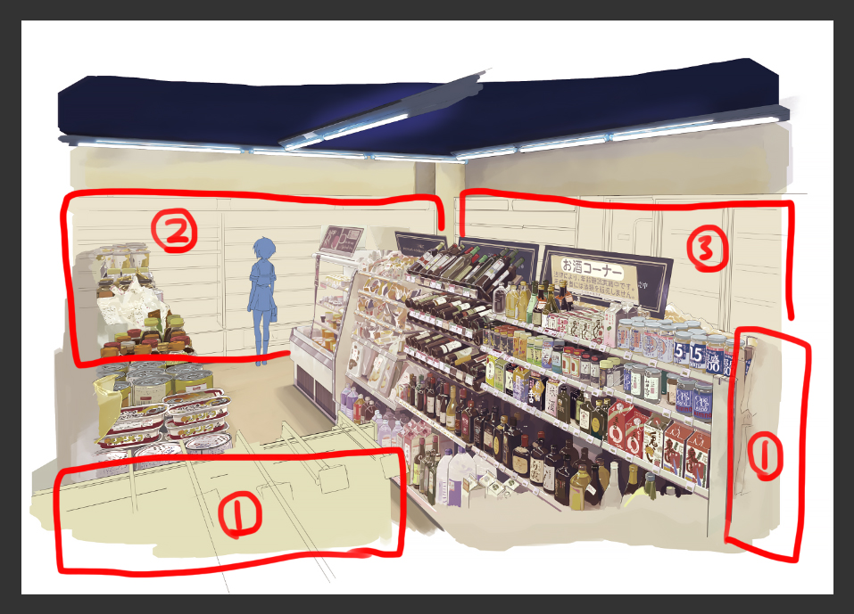 この調子でいくと、理想は今日明日でここの奥と手前たちを片付けて、30日で背面全部やって完成~~~ってなるんだけど、絶対ならないので、リアルな日数を計算するとあと6日くらいかかりそうです。やる気の無さが伺えます。いや、帰宅後すぐにとりかかれば終わるかもしれない。でも家事やらなんやらたくさんあってたぶん無理。というか奥のほうはどんどん手抜き風に頑張らないといけないのでその匙加減がわからない。忠実に描くだけならただの作業だけど、ちゃんと手を抜くのが難しい。