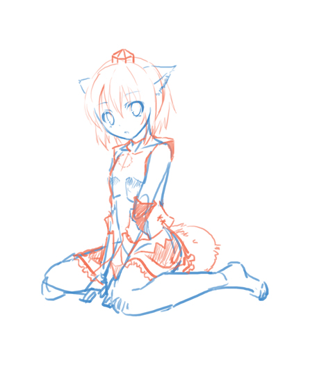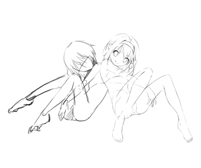 線画ひとつとっても、綺麗に描かずラフで寸止めしてる状態。