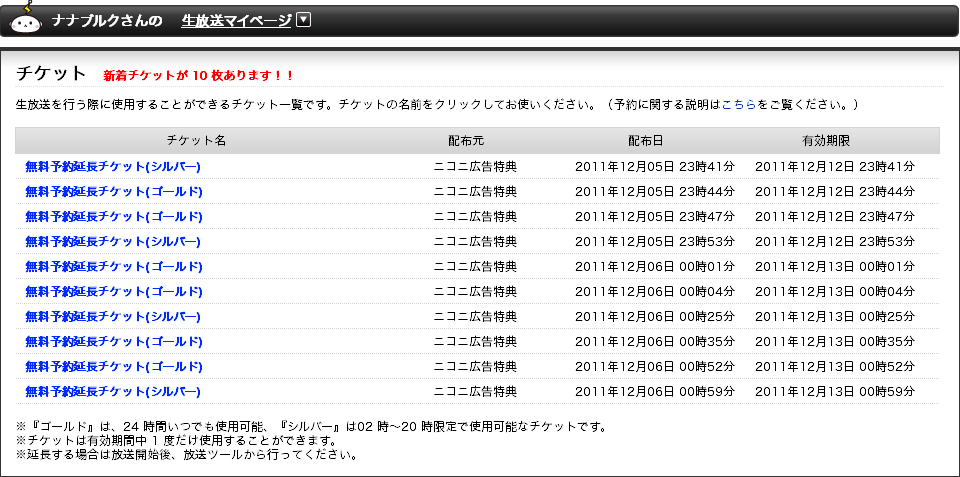 気がついたらチケットの総数が10枚になってました。