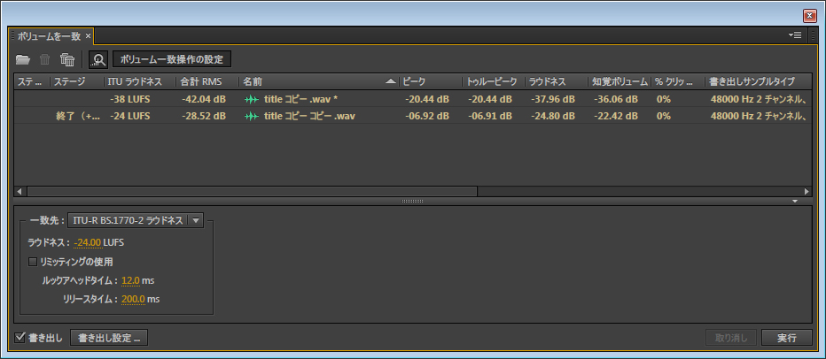 これで、ラウドネス基準の-24LKFSに調整され、音量も変わった。