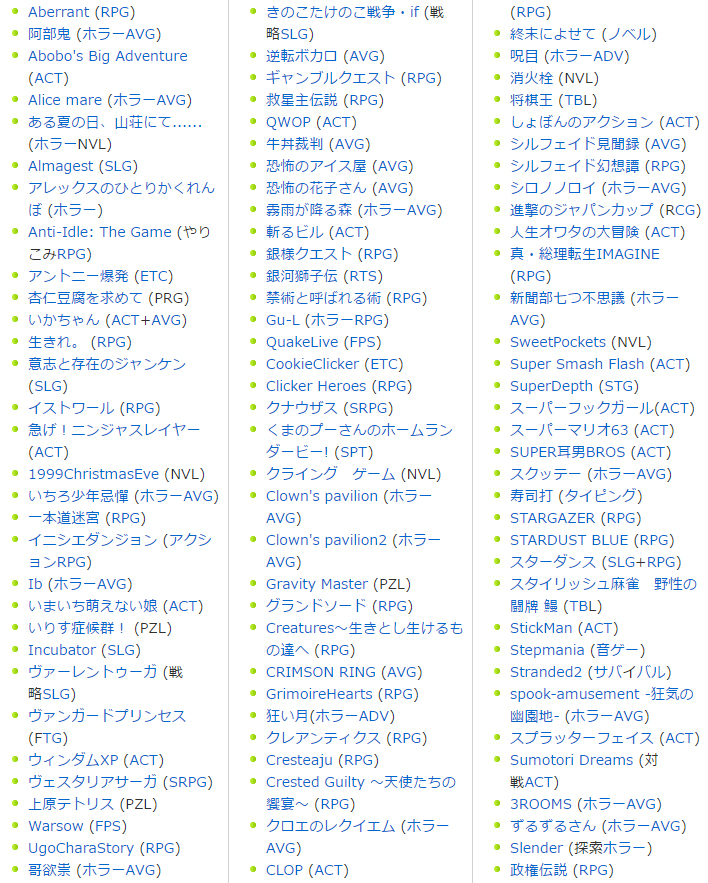 試しに「フリゲー タイトル一覧」でググってみると