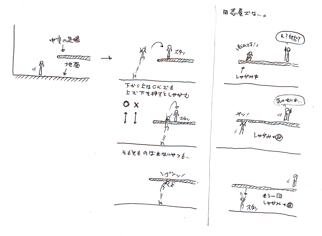 崖下にぶら下がってやり過ごすって感覚を、2Dでも再現したくて